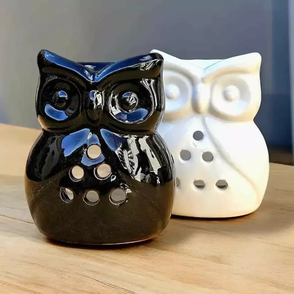 Dale encanto y calidez a tus espacios con este Hornito Cerámico Búho Calado, ideal para usar con esencias, aceites aromáticos o velitas tipo tealight. Su diseño en forma de búho, con perforaciones decorativas, crea un efecto de luz hermoso cuando la vela está encendida, aportando un ambiente relajante y acogedor.