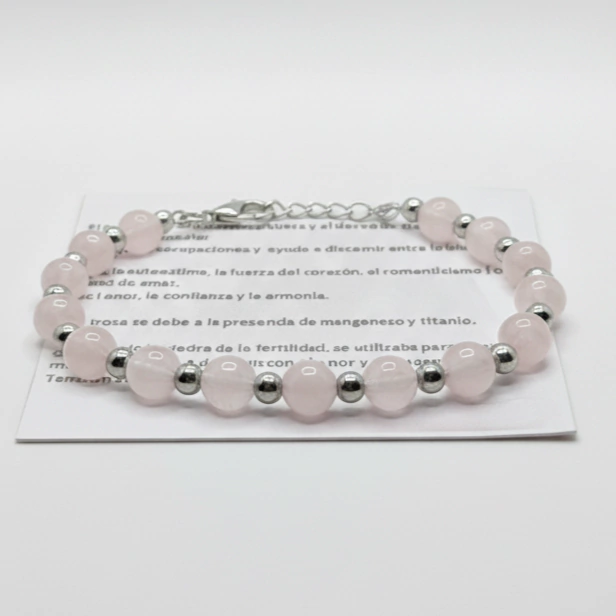Es liviana, cómoda y perfecta para uso diario. El cuarzo rosa es conocido por su vibra amorosa, su conexión con la calma y la apertura emocional, así que no solo suma estilo: también suma intención.