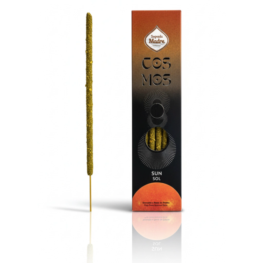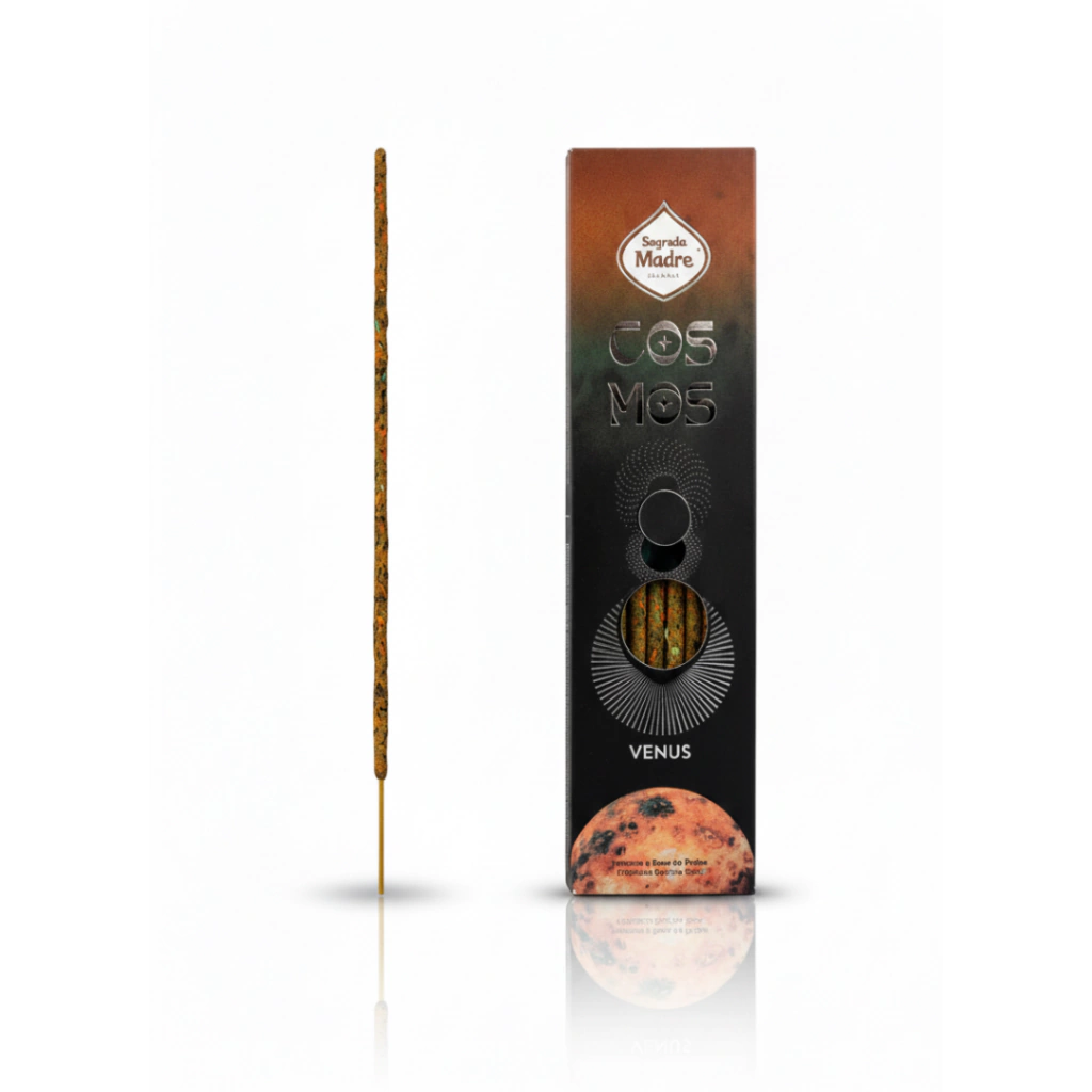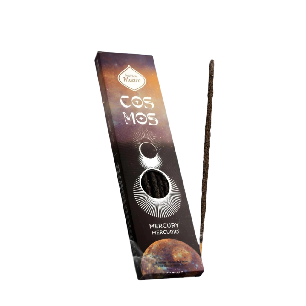 La colección Cosmos de Sagrada Madre reúne siete inciensos artesanales, cada uno inspirado en un planeta y su energía. Cada varilla contiene hierbas, resinas, cedro, biomasa de frutas y aglutinantes naturales, con una duración aproximada de una hora por varilla. La línea se elabora con palo santo reforestado, materiales reciclables y sin maltrato animal.